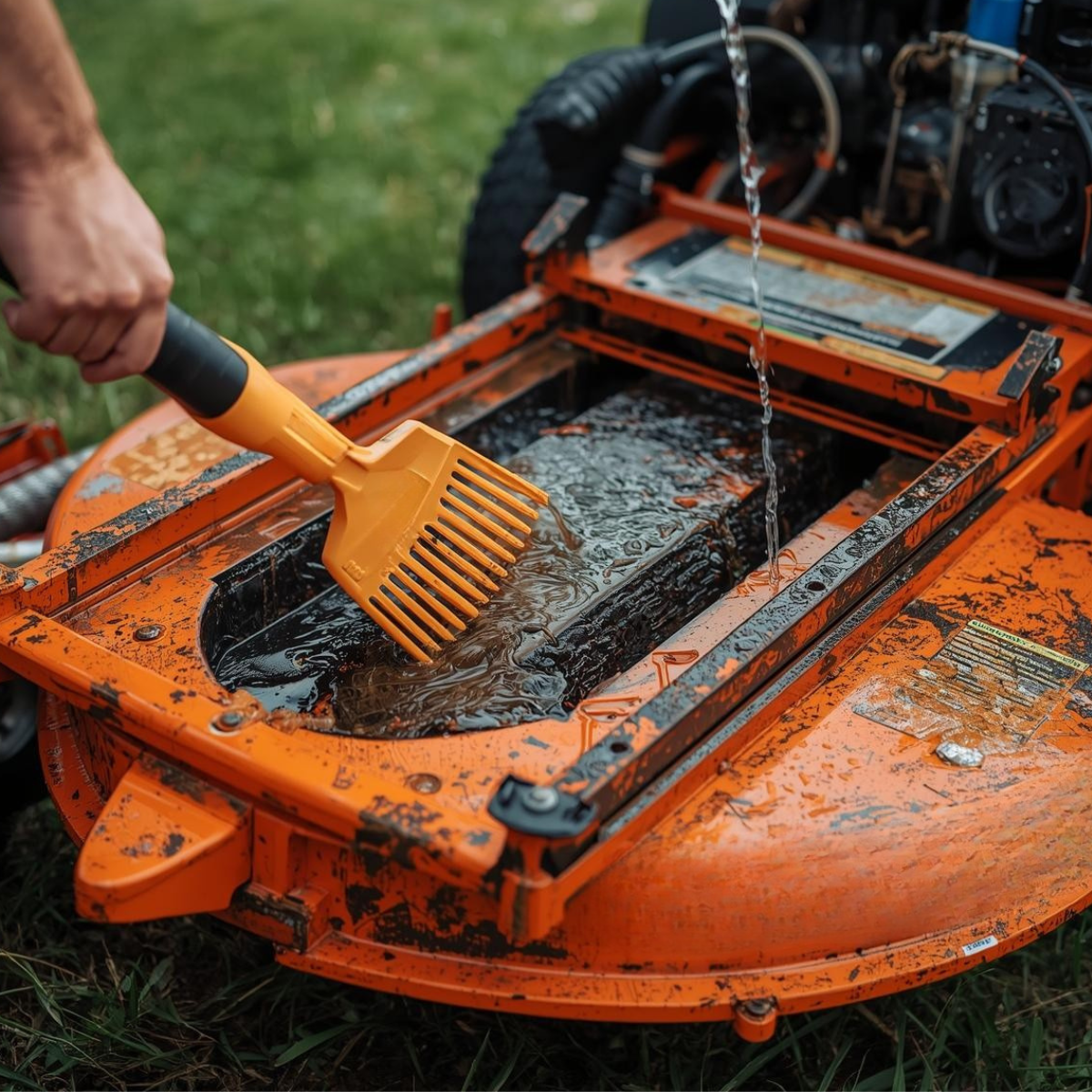 A clean deck fights rust, yet your wash method can harm components. Avoid blasting water into bearings, electrical connectors, and control switches. Instead, scrape thick buildup first with a plastic putty knife or stiff brush. Then, rinse lightly and use mild soap on the residue around baffles and corners. If your deck has a wash port, follow the steps and use low pressure. After washing, dry the deck with towels, a blower, or compressed air. Next, run the blades briefly, so the airflow clears hidden moisture under the shell. Then, touch up chips with paint, because bare steel rusts in humid sheds. Also, wipe the underside with a thin rust inhibitor or silicone spray. However, keep spraying off belts and pulleys, because a slip causes failure. Finally, park with the deck raised, so air moves and dries trapped spots. Bob’s Tractor Parts can supply deck wash items, blades, and rust products for storage.
